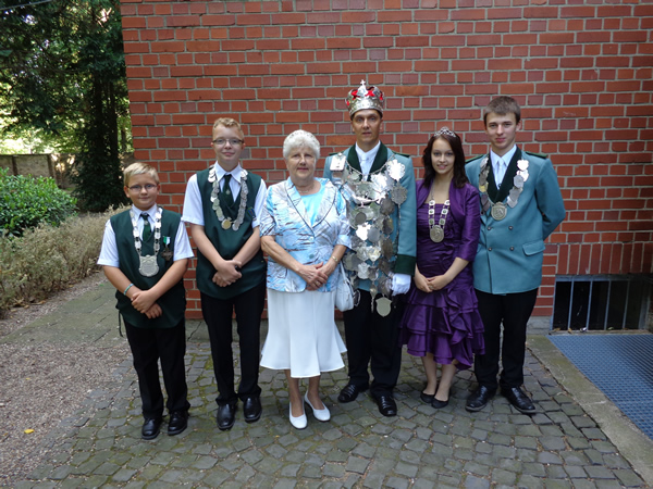 Am Sonntag war das Tambourkorps wieder früh zum Wecken unterwegs. Um 10.00 Uhr wurden im Festgottesdienst den neuen Majestäten, mit kirchlichem Segen die Insignien ihrer Würde überreicht. Am frühen Nachmittag versammelten sich bei jedem der neuen Würdenträger Freunde und Bekannte.
